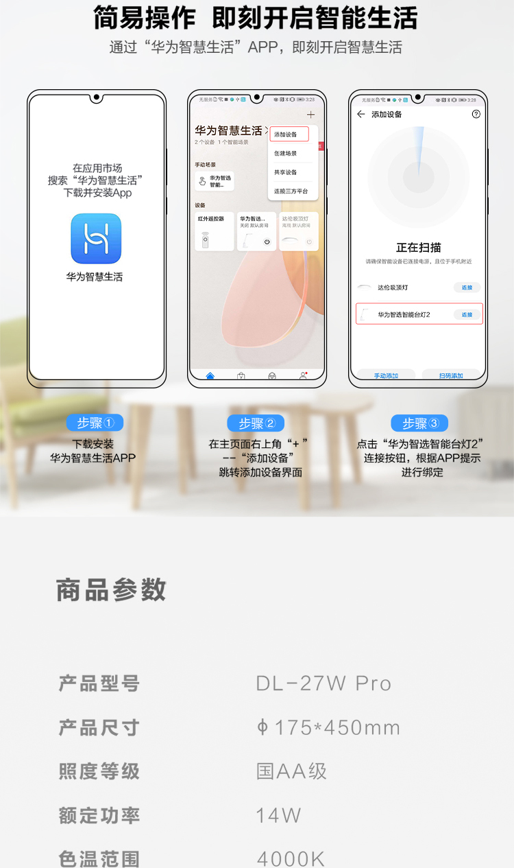 华为智选 达伦智能台灯2 白色(支持HUAWEI HiLink)
