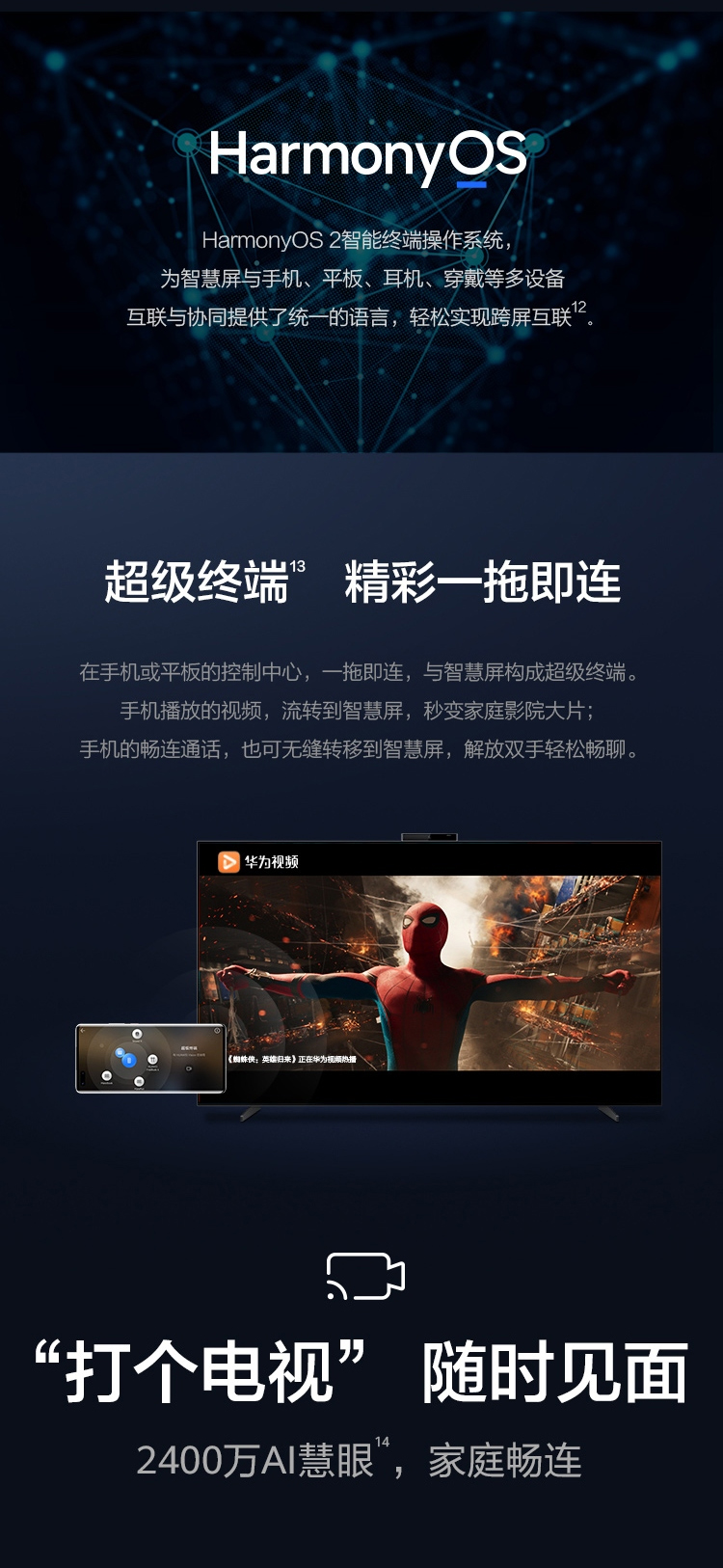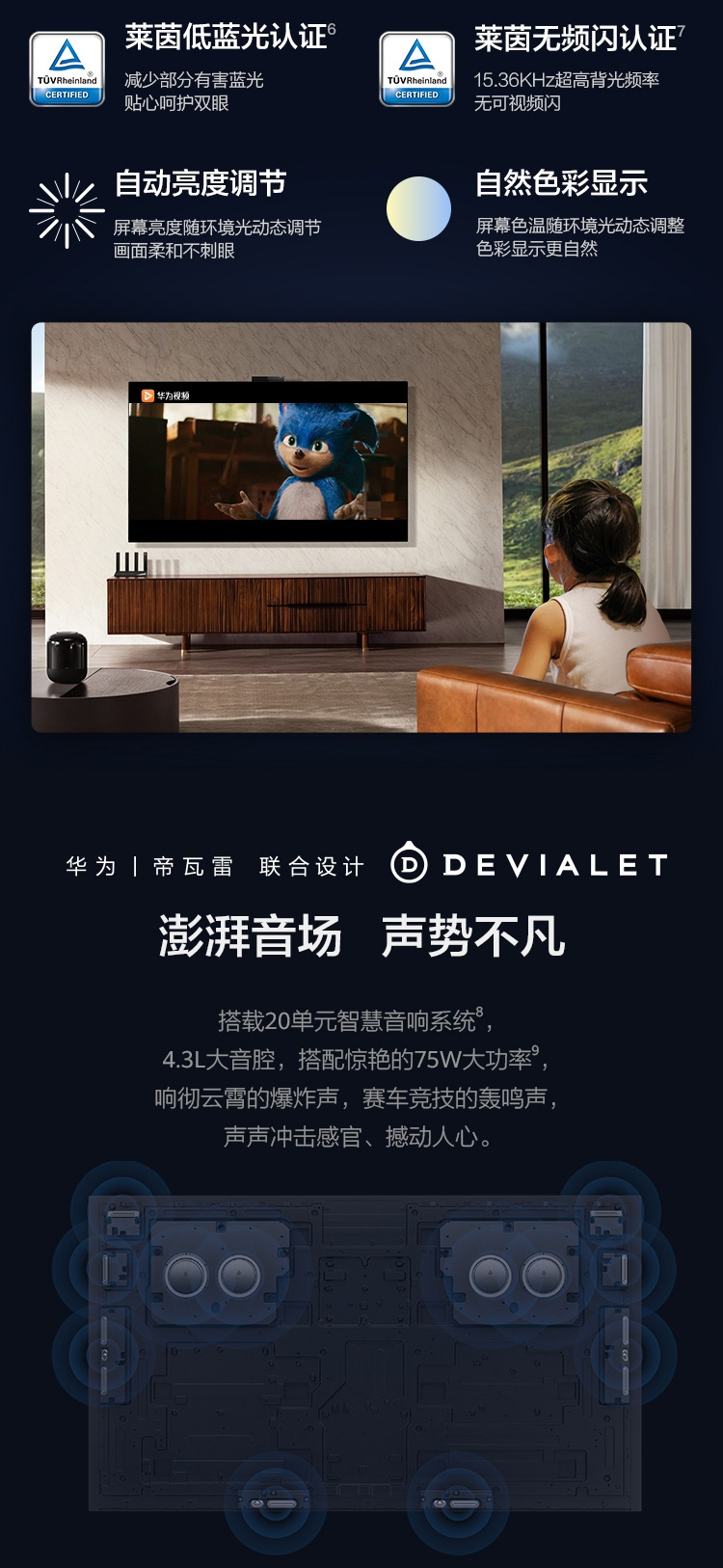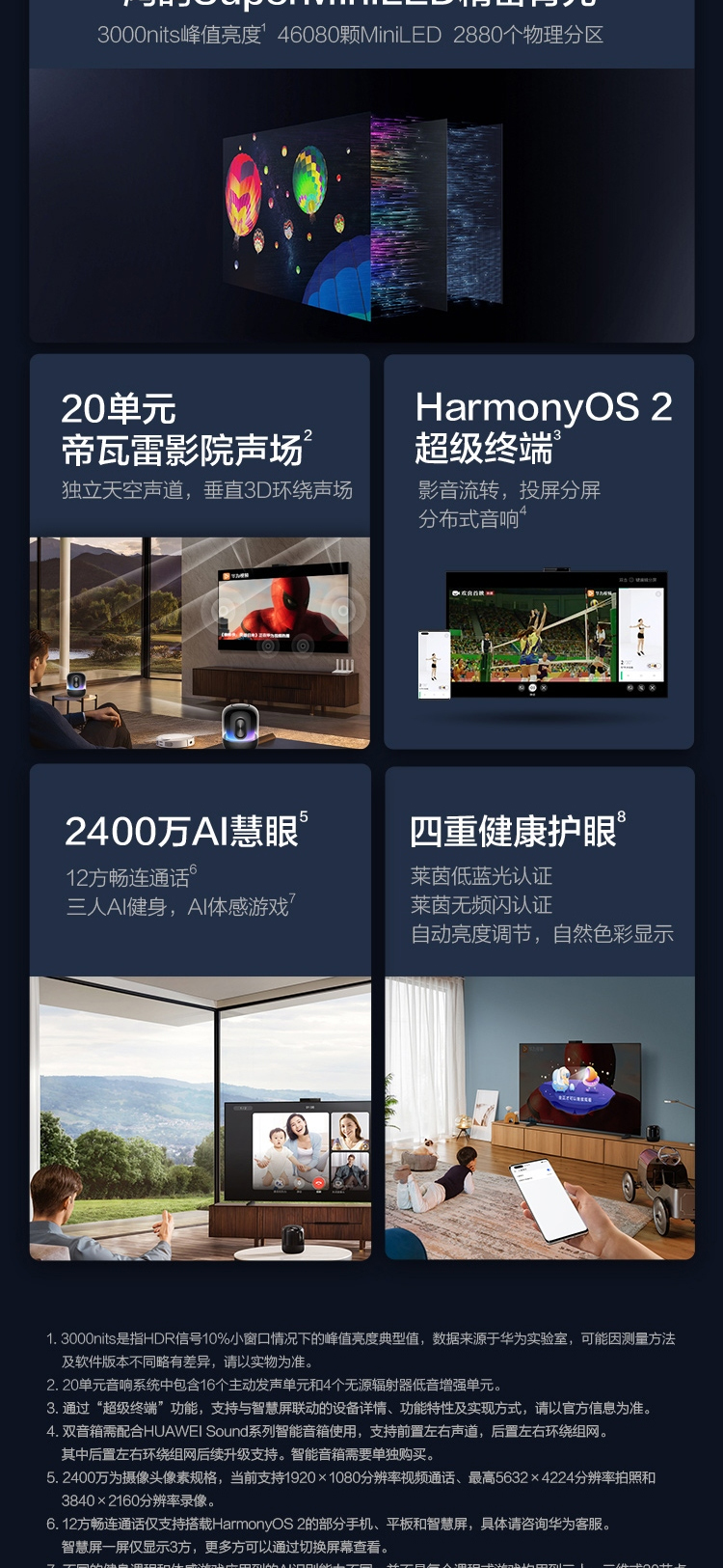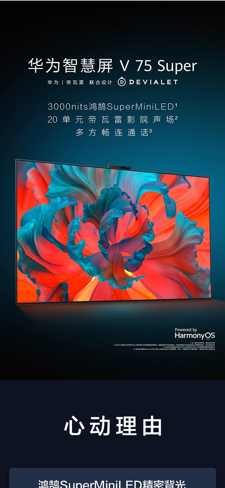 华为智慧屏 V75 Super 75英寸MiniLED超薄全面屏 97%DCI-P3电影级广色域 3000nit高亮度 20单元帝瓦雷音响 AI慧眼 鸿蒙HarmonyOS 2