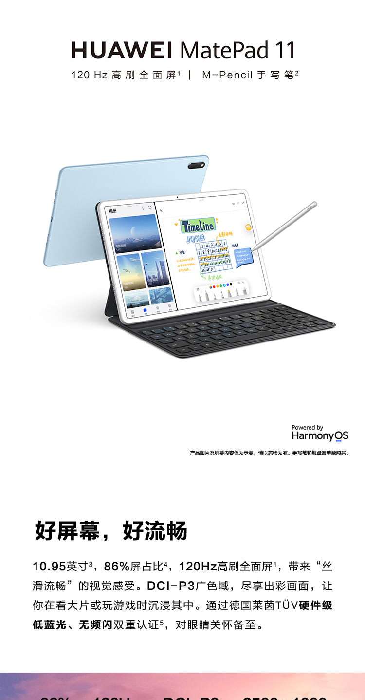 HUAWEI MatePad 11 华为平板电脑 120Hz高刷全面屏 HarmonyOS 2全新生产力 4大振幅扬声器+哈曼卡顿调音